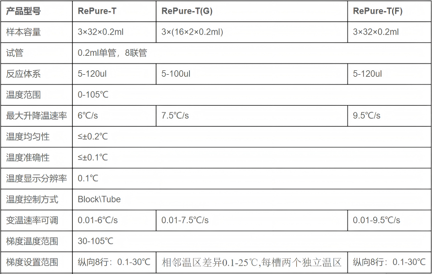 柏恒科技RePure-T系列三槽梯度PCR仪采用安卓操作系统,匹配10.1英寸电容式触摸屏,可独立运行三个梯度模块;前进后出式风道,机器可以并排放置;自适应热盖,合盖紧盖一步到位;采用进口温度循环器专用长寿命Peltier模块,循环次数大于100万次,变温速率可达9.5°C/S;内置WIFI模块,可用手机APP控制多台机器。