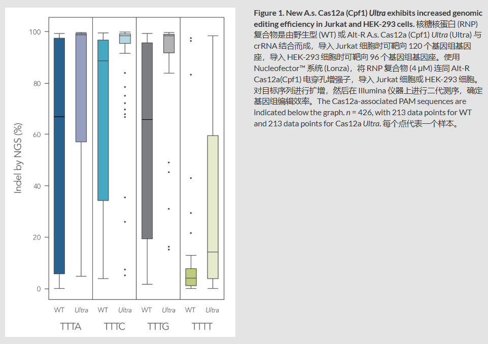 新开发的Alt-R Cas12a(Cpf1) Ultra酶提高了整体编辑效率