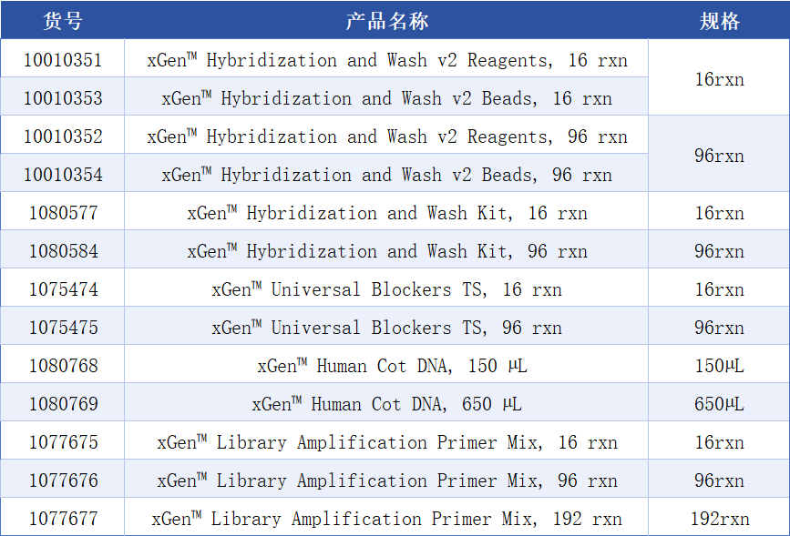 xGen杂交捕获核心试剂能够为多种探针组规格和多重化水平提供可靠的靶向测序功能。这些试剂配合xGen杂交探针组一起使用,可实现完整、高质量的靶向富集解决方案。