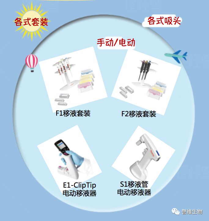 3/4支移液器+原装进口吸头+移液器枪架+储液槽+圆珠笔+产品手册+移液指南